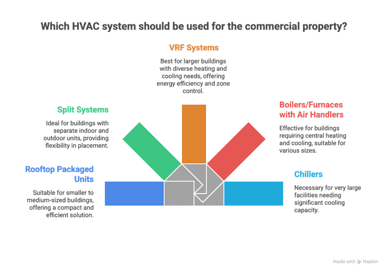 Ductless systems offer flexibility but may not suit all commercial layouts.
